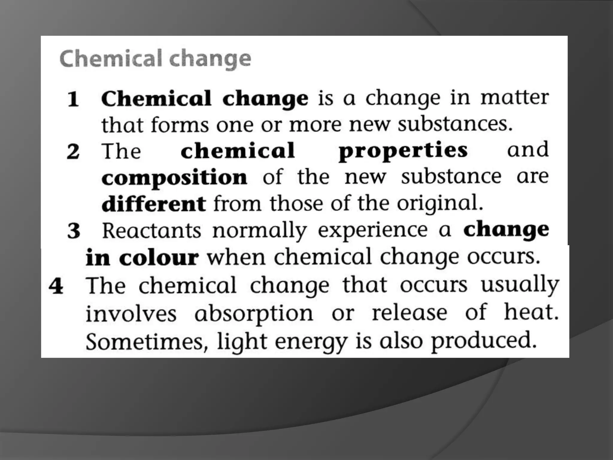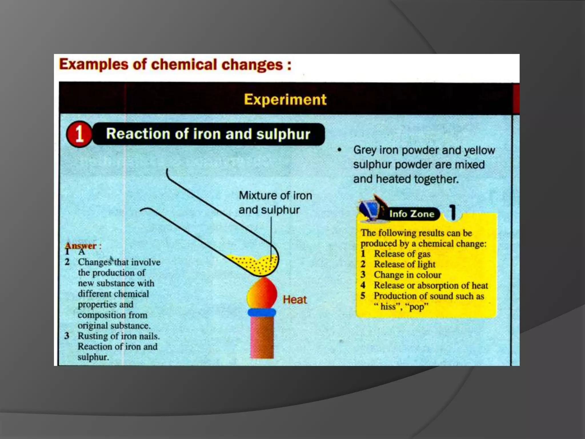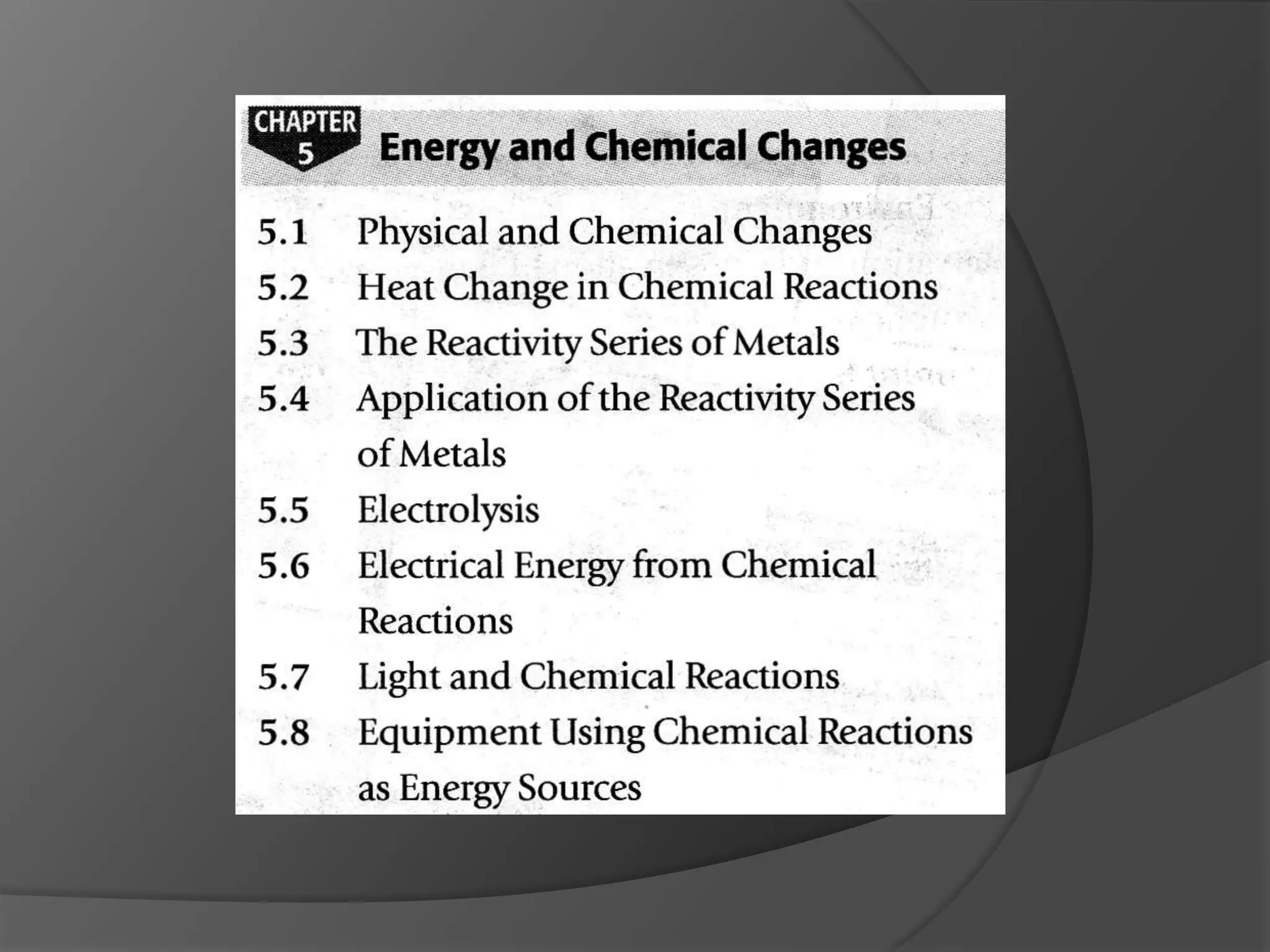 This chapter discusses physical and chemical changes, heat changes during chemical reactions, and the reactivity series of metals. Physical changes alter a substance's physical properties without changing its chemical composition, while chemical changes form new substances. Chemical reactions either absorb or release heat, changing the temperature of the surroundings. Metals exist in a reactivity series based on their tendency to undergo replacement reactions, with more reactive metals displacing less reactive ones.