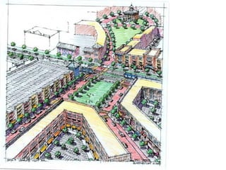 This document discusses form-based codes and their advantages over traditional zoning. Form-based codes regulate physical development to achieve a specific urban form, focusing on building placement and design rather than land use. They address issues like urban sprawl and promote walkable, compact, and mixed-use development. Form-based codes create predictable physical results, shape high quality environments, and encourage independent development by multiple owners. They define a neighborhood's character and are easier for the public to understand compared to conventional zoning.