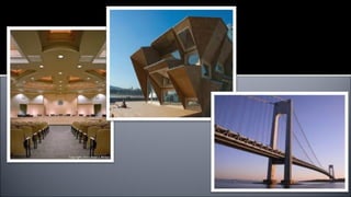 This document discusses the architectural principle of "form follows function". It begins by quoting Louis Sullivan stating that this principle is a universal law that applies to both organic and inorganic things, as well as physical and metaphysical things. The form or expression of something is recognizable through its function.