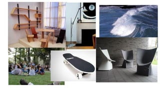 It then provides examples of how form depends on function for different types of buildings and structures. The form of a movie theater or farmhouse, for instance, depends on its long-term function and intended use. Product design is also influenced by considering a product's entire lifecycle from conception to use and retirement.