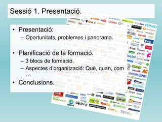 Sessió 1. Presentació.Presentació: Oportunitats, problemes i panorama. Planificació de la formació. 3 blocs de formació. Aspectes d’organització: Què, quan, com … Conclusions.