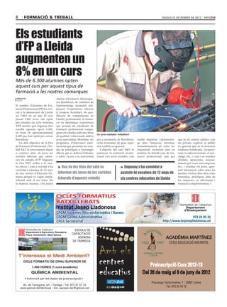 representades. El saló ocuparà ciar que la F&T tindrà enguany les que se celebren a Lleida en Simó, que va remarcar “la im- FP.CAT, xarxa de centres que