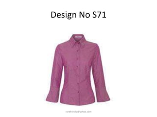 The document contains details of various design numbers from S71 to S87 for a formal collection by Concept Surbhi. It lists the design numbers, email address surbhiindia@yahoo.com and contact details for Surbhi including her mobile number and email.