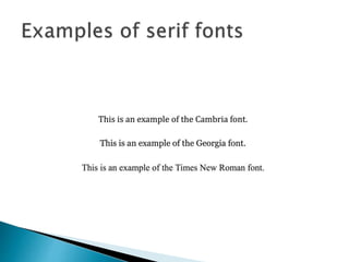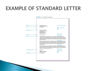 The document discusses the proper formatting of business documents and letters. It provides guidelines for fonts, layout, structure, and specific sections of business letters and memos. Key recommendations include using simple, traditional fonts like Times New Roman; leaving text aligned left and single-spaced; and including standard elements like salutations, bodies, closings and signatures in business letters. Consistent, clear formatting is emphasized as important for professionalism and readability.