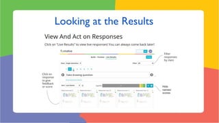 Formative is an online platform that teachers can use to create formative assessments. It has tools that allow teachers to add questions, content, and upload and transform existing documents into interactive assessments. The document provides examples of how to use Formative's question types, content types, and upload and transform tool to create engaging formative assessments. It also includes codes for sample assessments on Formative.