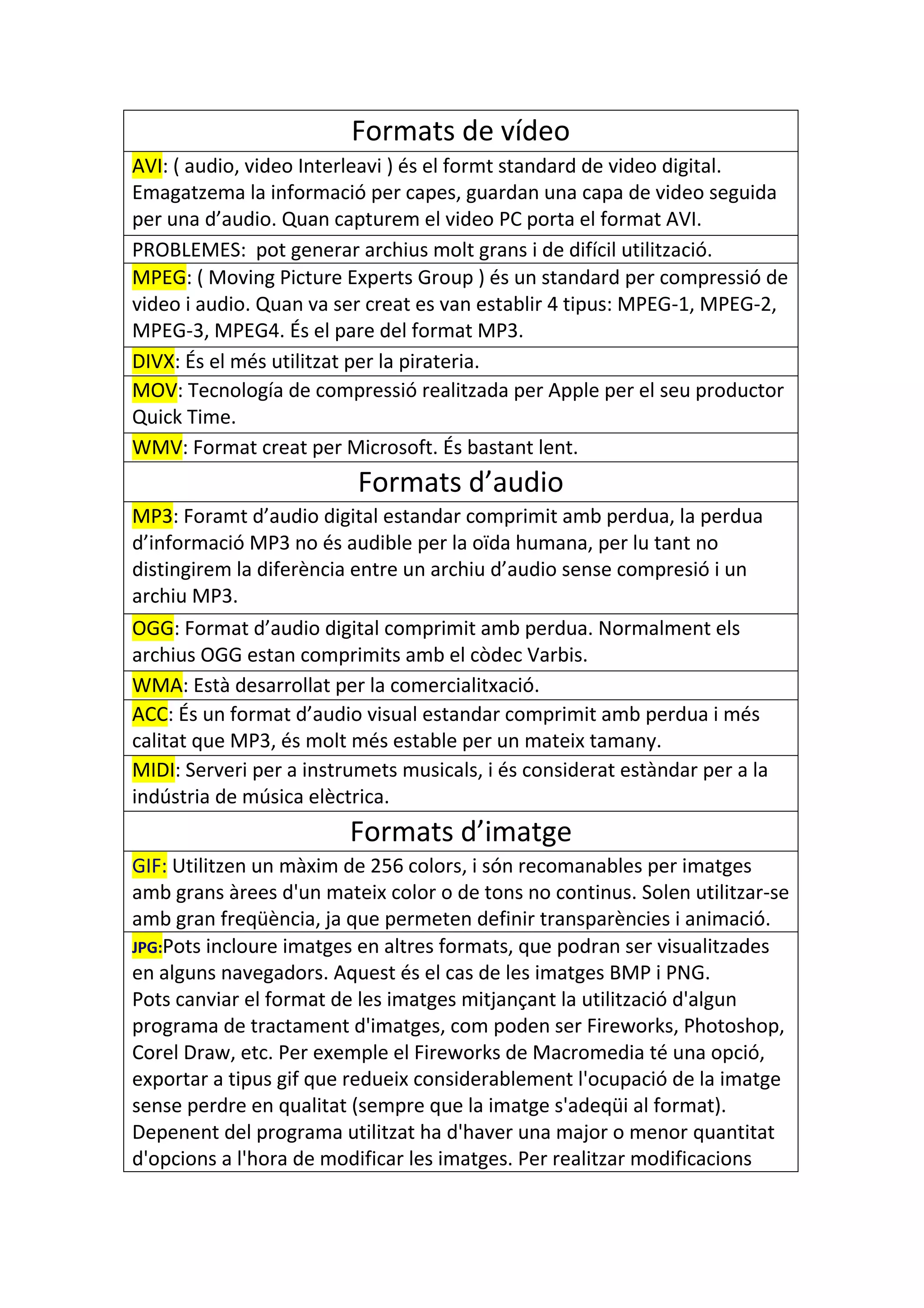 WMV: Format creat per Microsoft. És bastant lent.