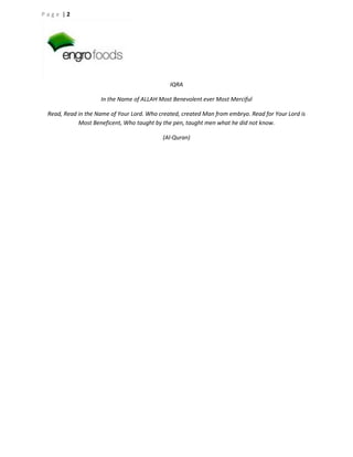3) He also performed tasks like diagnosing and sampling for disease, demonstrating silage making techniques, and vaccinating animals against diseases. The internship provided experience with Engro's advanced EMAN networking system and other technologies.