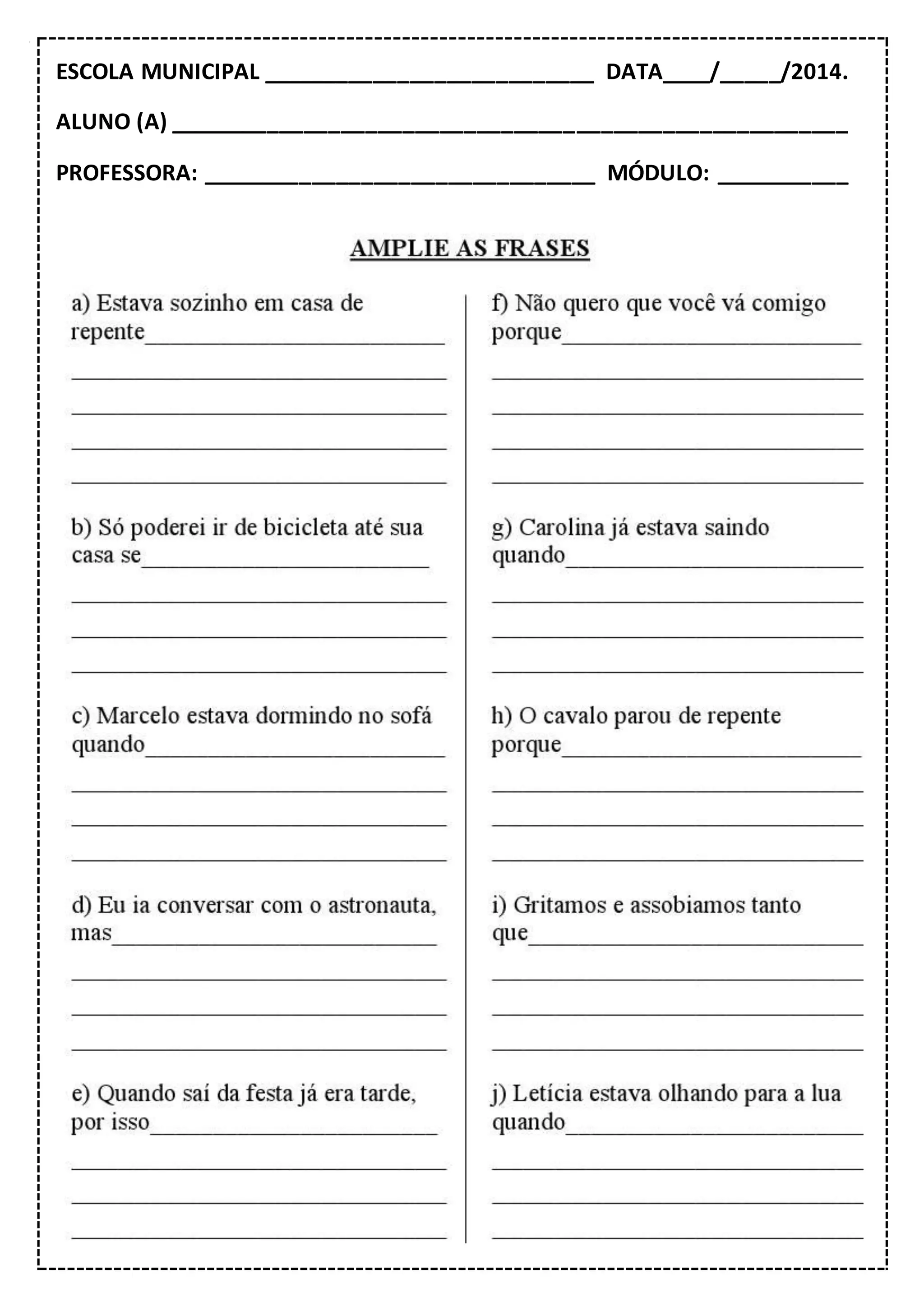 This Portuguese document appears to be a student's report card from a municipal school with the date, student's name, teacher's name, and module/class listed. It provides basic identifying information for a student in a particular class and school.