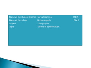 Name of thestudent teacher ; Surya lekshmi.u STD;9
