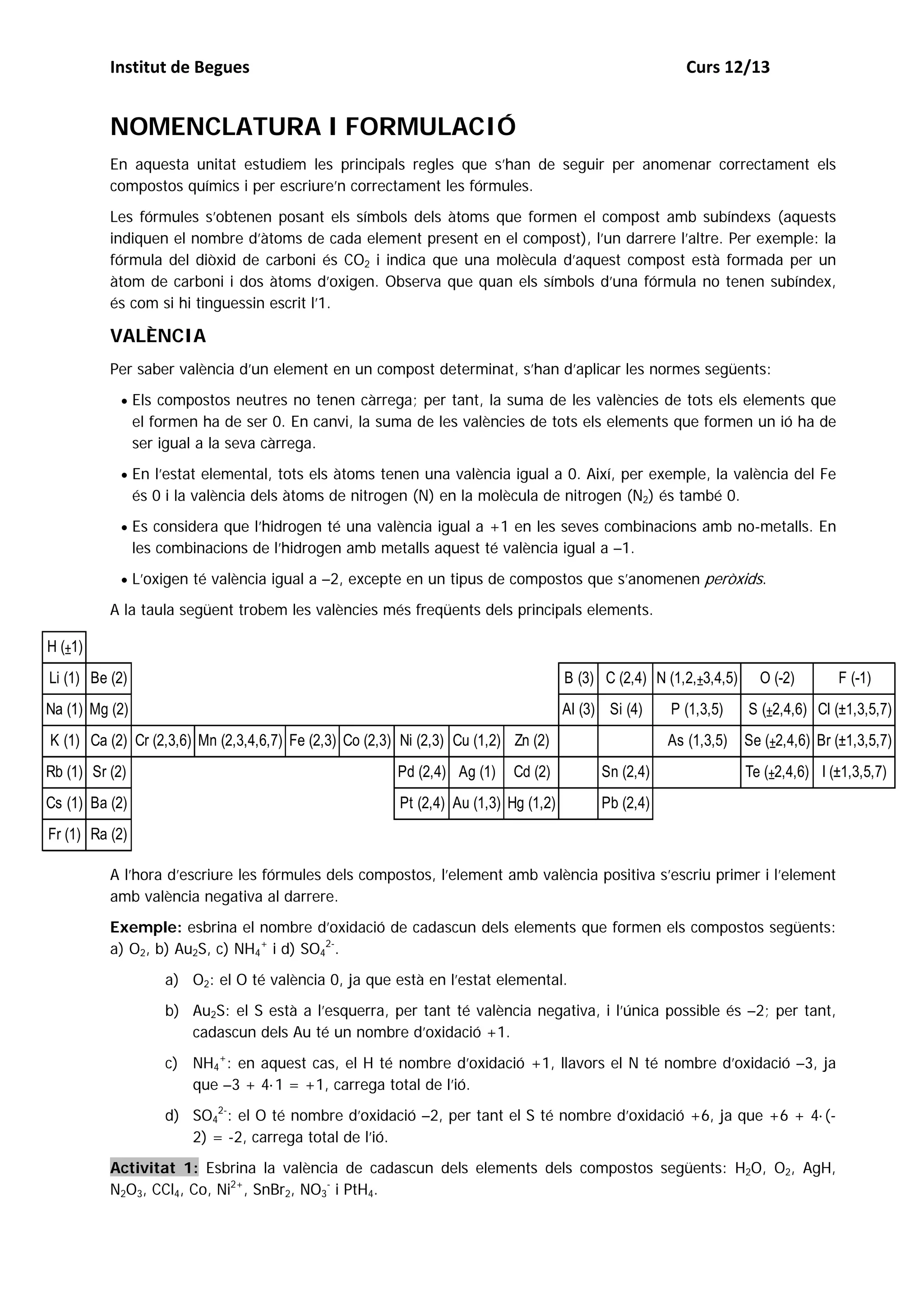 Per saber valència d’un element en un compost determinat, s’han d’aplicar les normes següents: