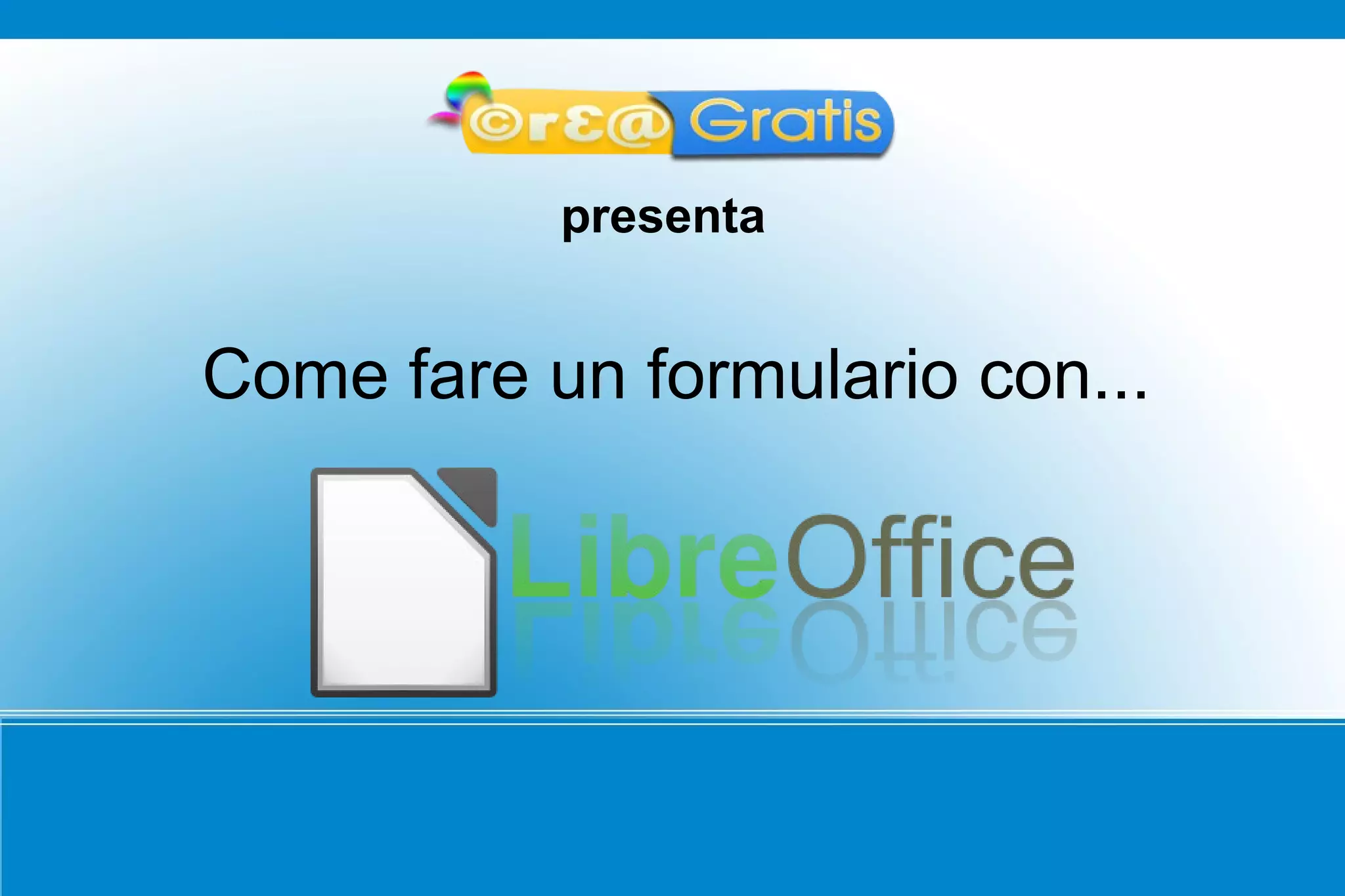 Il documento istruisce su come creare un formulario utilizzando Writer, partendo dalla creazione di un nuovo documento e dall'impostazione dei campi necessari. Si evidenziano i passaggi per aggiungere elementi come campi di testo e pulsanti di opzione, includendo la modifica di didascalie e parametri. Infine, si spiega come convertire il documento in formato PDF.