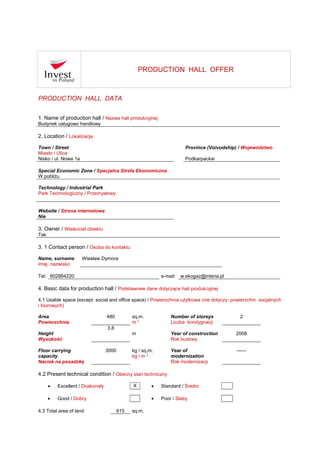 4. Basic data for production hall / Podstawowe dane dotyczące hali produkcyjnej