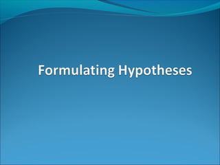 This document provides an overview of key concepts related to formulating and testing hypotheses. It defines a hypothesis as a proposition or claim about a population that can be empirically tested. Hypothesis testing involves examining two opposing hypotheses: the null hypothesis (H0) and alternative hypothesis (Ha). It describes the basic steps of hypothesis testing as formulating the hypotheses, defining a test statistic, determining the distribution of the test statistic, defining the critical region, and making a decision to accept or reject the null hypothesis. Key concepts like type I and type II errors, significance levels, critical values, and one-tailed vs two-tailed tests are also explained. Parametric tests like the z-test, t-test, and