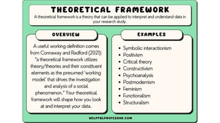 • The theoretical framework introduces and describes the theory