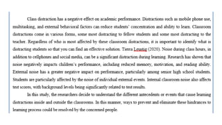 distractions among the selected Grade 11 Humanities and