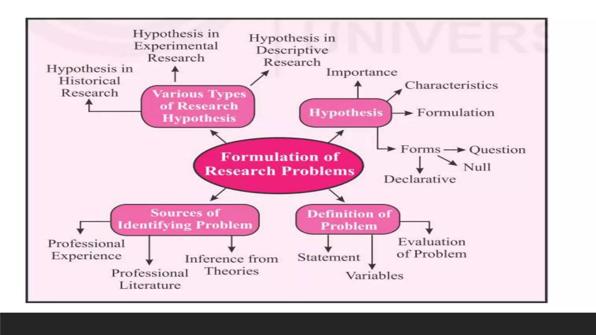 3. Sources for identifying research problems include professional experience, literature reviews, theories, and social or technological changes within a field. Defining a well-structured problem helps create focused, innovative research.