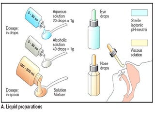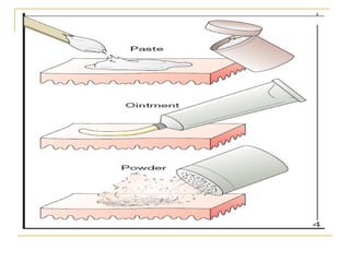 The document discusses various pharmaceutical dosage forms including solid, liquid, and semi-solid forms. It details the advantages and characteristics of each form, such as tablets, capsules, solutions, and ointments, as well as the reasons for using different formulations based on factors like drug properties and patient compliance. Additionally, it highlights methods for drug administration and the importance of formulation in drug effectiveness.