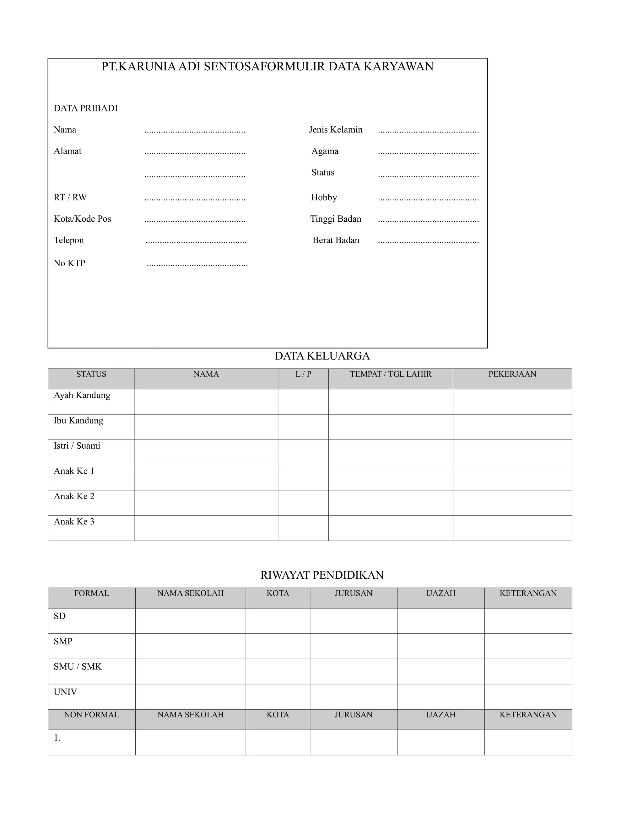 This document is a form collecting personal and employment information for a job applicant. It requests information such as the applicant's name, address, religion, family, education history, and previous work experience. The form collects details like the names and dates of birth of family members, the schools attended and degrees earned, as well as the companies worked for, positions held, and reasons for leaving previous jobs.