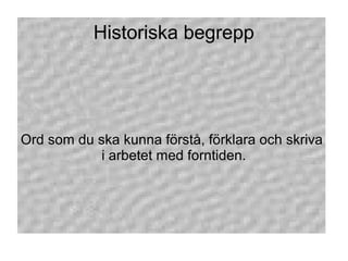 du ska kunna förstå, förklara och skriva i arbetet med forntiden.