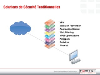 This document provides an introduction to Fortinet's Unified Threat Management solutions. It discusses how Fortinet uses a single appliance with a specialized operating system to provide comprehensive security with features like firewall, antivirus, web filtering, intrusion prevention, and more. It also touches on the FortiGate platform, management tools, subscription services, and various FortiGate components and appliances in the Fortinet product line.