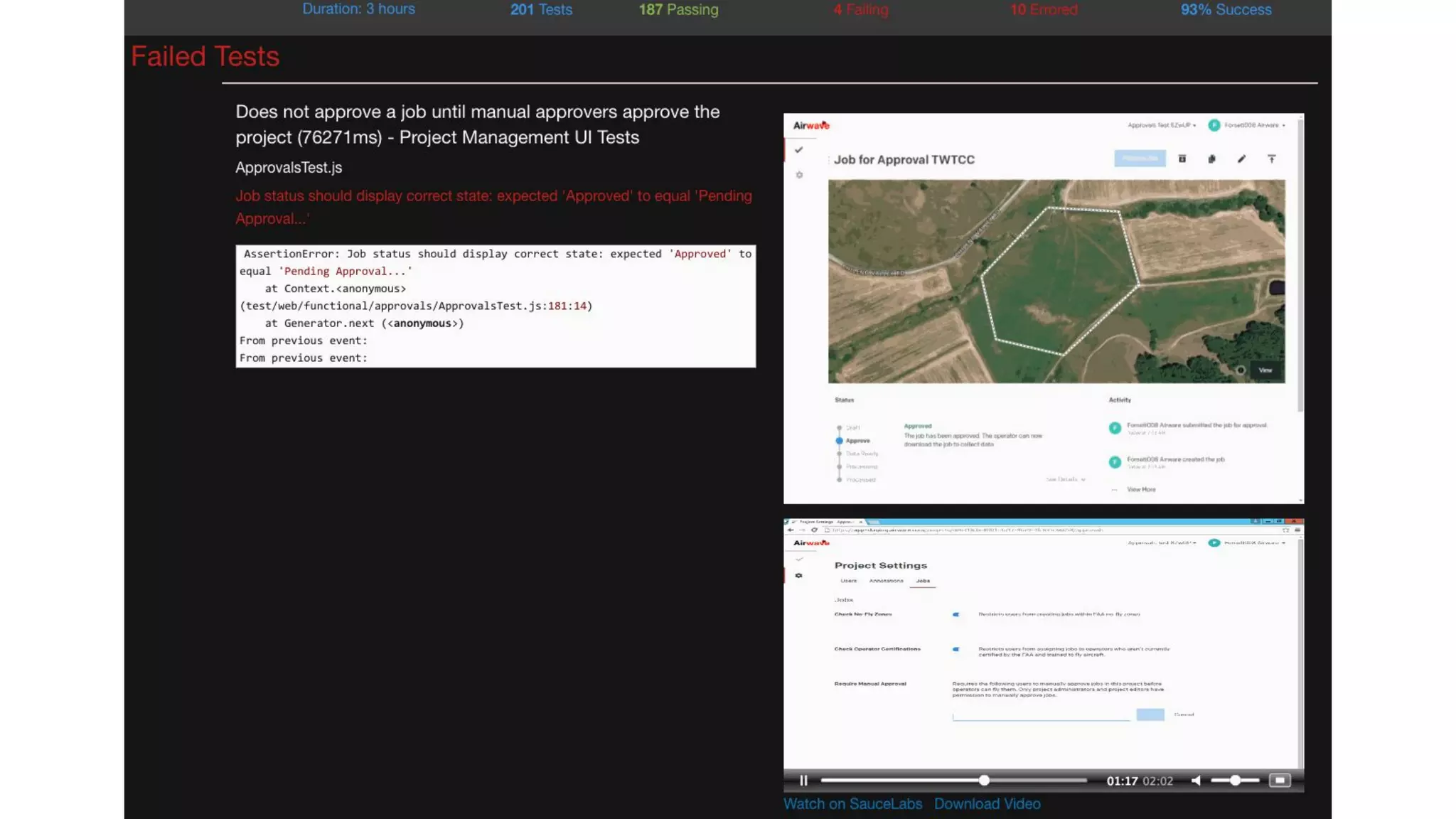 The document discusses the experiences of Airware, a drone company, with utilizing Node.js for full-stack end-to-end test automation over the past year. It highlights the evolution of their testing framework, including the integration of tools like Selenium and Applitools, and emphasizes best practices in developing readable tests and maintaining testability. Key lessons learned from their implementation are shared, along with references to various libraries and the importance of visual testing.