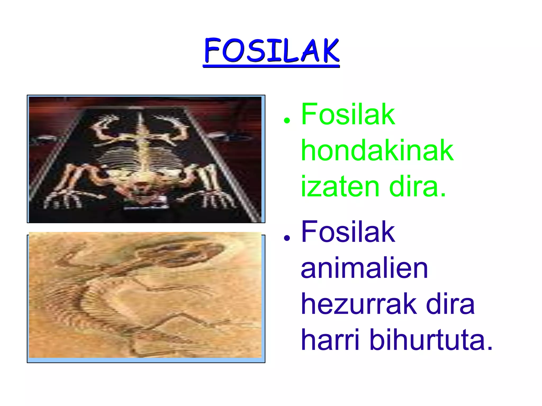 Zertarako balio dutefosilak?Fosilak balio dute jakiteko ze animali motak zeuden garai horretan.