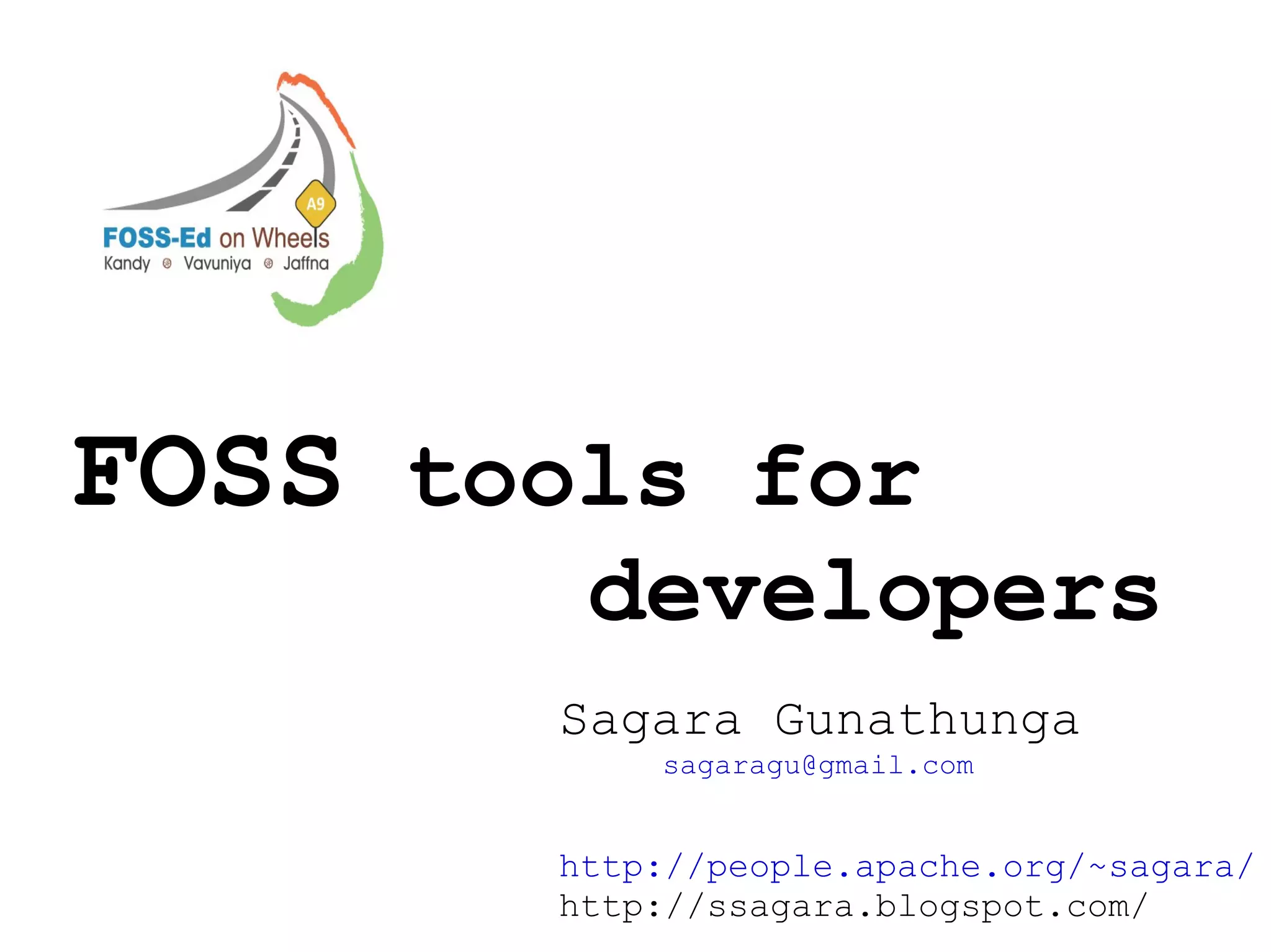 ![FOSS tools for developers Sagara Gunathunga [email_address] http://people.apache.org/~sagara/ http://ssagara.blogspot.com/](https://image.slidesharecdn.com/fosstools-100211095036-phpapp02/75/Foss-Tools-1-2048.jpg)