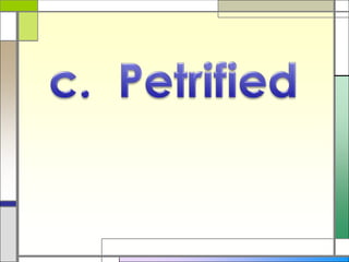 Fossils are the remains or traces of prehistoric life found in sedimentary rocks. The type of fossil formed depends on how and where the organism died and was buried. Fossils can be unaltered remains like teeth and shells, or altered remains that have changed over time through processes like petrification or carbonization. Trace fossils provide indirect evidence of prehistoric life through things like tracks, burrows, and coprolites. Fossils are important for interpreting ancient environments and changes over time.