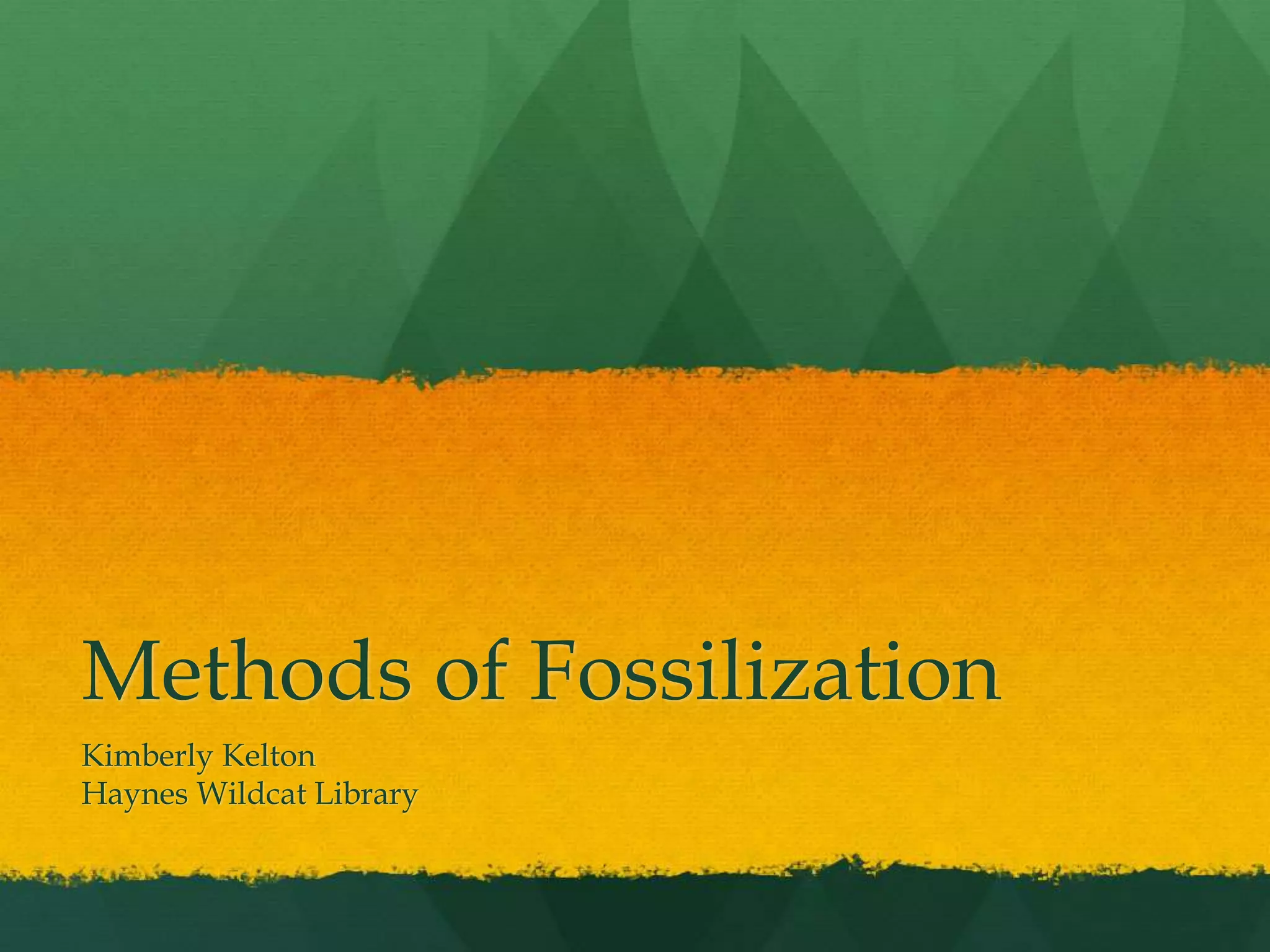 The document provides instructions for a student project on the different methods of fossilization. It discusses five main types of fossilization: fossils in rocks, amber, petrifaction, asphalt, and frozen fossils. Students are tasked with creating a step book that defines and describes each method using cited sources from materials provided, including an encyclopedia article, online resources, textbooks, and library books. Guidelines are provided on gathering information, illustrating examples, and citing sources for the project. A pre- and post-assessment quiz is also included to gauge students' understanding of the five fossilization methods.