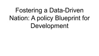 ● A "Culture of Data" means: Systematically using data for decision-making, innovation, and transparency to improve development