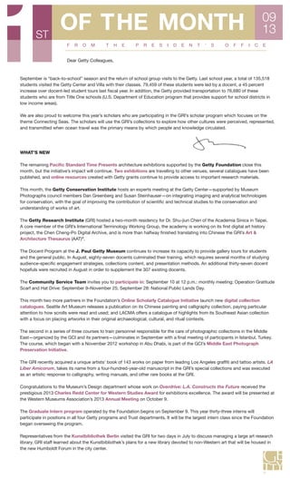 The document provides updates from various departments at the Getty, including: