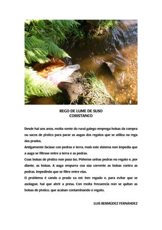 ou sacos de plástico para parar as augas dos regatos que se utiliza na rega