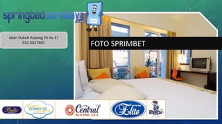 Dokumen ini berisi informasi tentang berbagai model dan harga spring bed yang tersedia di lokasi Jalan Dukuh Kupang 25 No 37. Pengunjung dapat mengecek katalog dan harga terbaru di website www.springbedsurabaya.com. Produk yang ditawarkan mencakup berbagai merek dan tipe tempat tidur berkualitas.