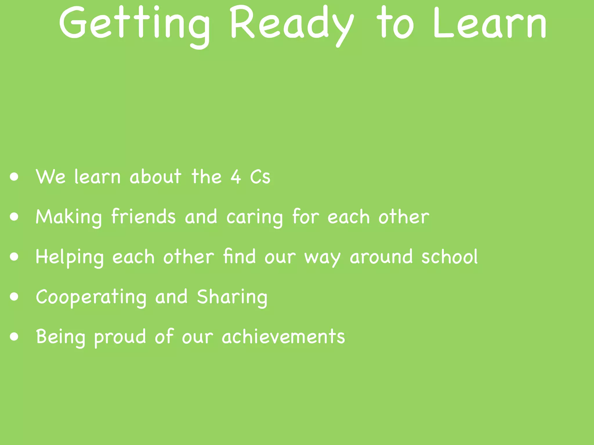 The document outlines the curriculum and activities for students in a foundation class. It discusses learning the 4Cs of caring, cooperating, creativity, and critical thinking. Students will make friends, learn independence, develop imagination through activities, learn to read and write in different ways, learn math concepts, and explore inside and outside. Fine motor, gross motor and other skills are developed through preparatory activities to get students ready for learning.