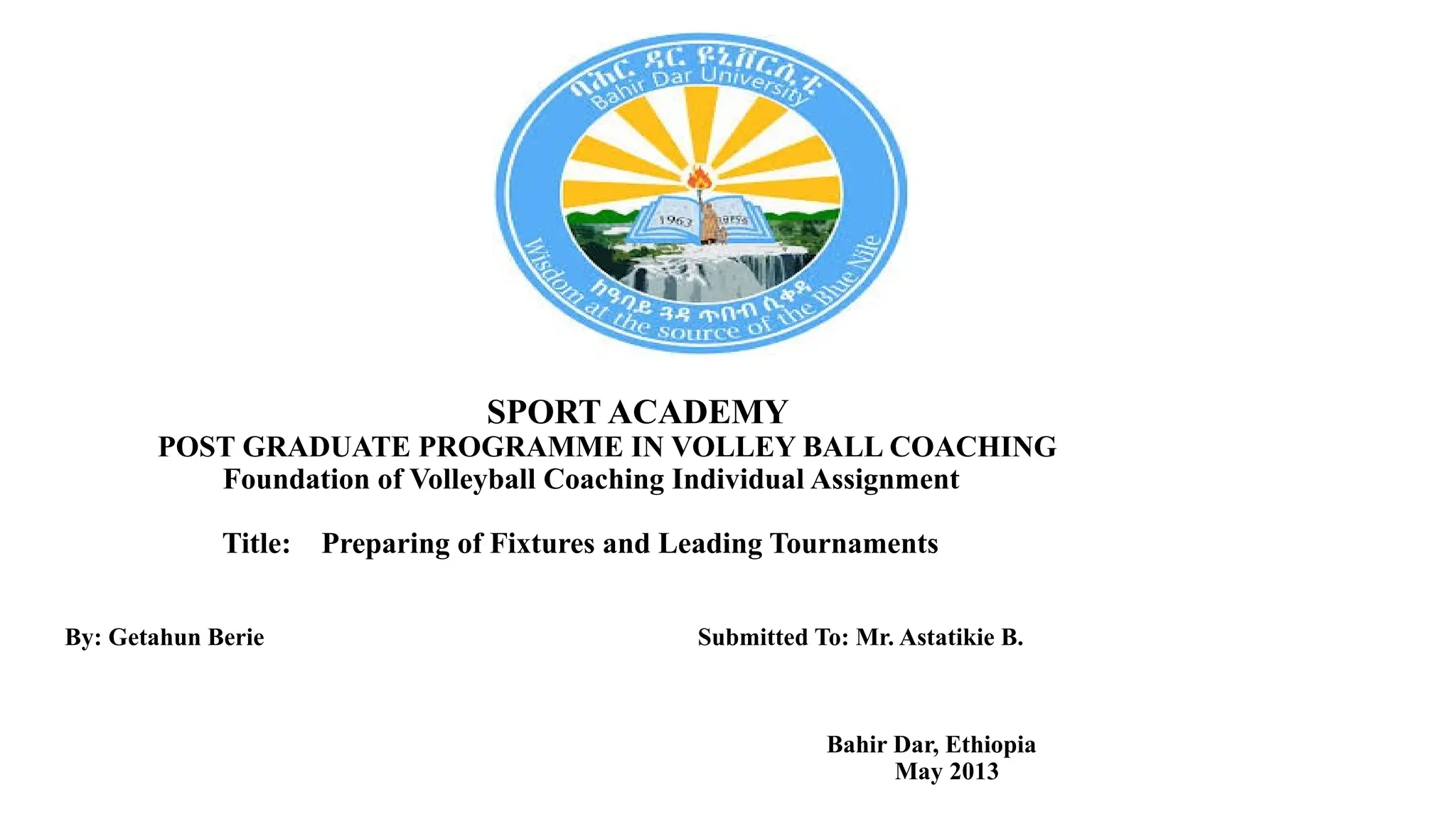 By: Getahun Berie Submitted To: Mr. Astatikie B.