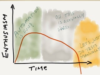This document provides four tips for web automation: (1) Learn locators to identify elements on web pages, (2) Know when to avoid locators due to asynchronous operations, (3) Understand how asynchronous operations work in your system to handle timing issues, and (4) Effectively handle data and configuration to simplify tests and make them more robust. The key message is that there are no universal best practices - the concepts must be applied to each individual system.