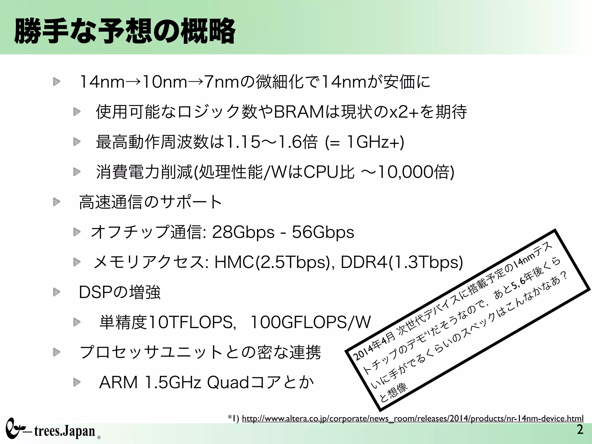 出典 Michael J. Flynn, "Using FPGAs for HPC* acceleration: now and in 20 years", FPGAs in 2032: Challenges and Opportunities in the next 20 years,