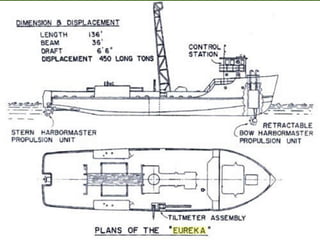 The principle ofusing thrusters to stabilize the position of a floating vessel was undoubtedly conceiving for the first time by Jules Verne around 1895. In 1961, United States, the coring vessel Eureka, was launched. The Eureka thus performed coring in more than 1300 m of water, with 6 m waves and 40 knot winds. Eureka that had an analogue control system interfaced with a taut wire, making it the first true DP ship.