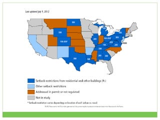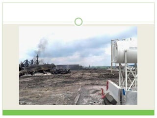 The document discusses environmental impacts and regulatory failures related to fracking in Ohio. It summarizes concerns about risks to public health and the environment from water and air pollution, increased toxic waste, and inadequate chemical disclosure laws and emergency response regulations. Specific incidents of well blowouts, fires, and fish kills are presented as examples illustrating the need for strengthened rules regarding setbacks, containment, chemical information sharing, and first responder resources.