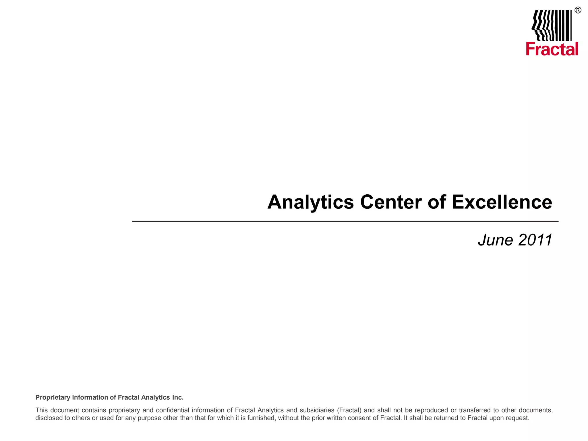 The document outlines the establishment of an Analytics Center of Excellence (ACE) to enhance organizational capabilities in data optimization and predictive analytics. It discusses the importance of institutionalizing analytics within organizations to achieve business transformation, competitive advantage, and operationalize insights through a dedicated team and structured methodologies. Key components include project management, team composition, investment structure, and the need for executive sponsorship to drive large-scale change.
