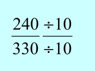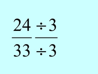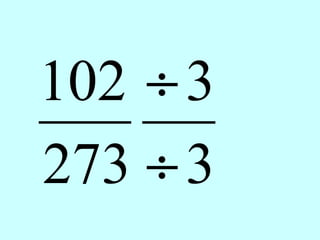 Demonstration of cancelling down a fraction to its lowest terms. Single step examples using the 3 and 7 times table. How to cancel fractions with larger numbers in several steps. How to use the prime factors of the numerator and denominator to cancel large fractions.