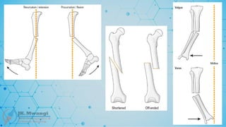 and lastly the length - here the fragments may be distracted and separated or may overlap due to muscle spasms causing shortening