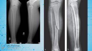 #22 traumatic fractures are the commonest in this category, and they usually occur in normal bone due to sudden and excessive force more than the ability of the bone to withstand, the trauma can be direct or indirect . When we say direct trauma this is when someone drops something heavy like a gas cylinder on the toes leading to a metatarsal fracture - so these fractures occur at the point of impact, or road traffic incident when the bumper of a vehicle hits the shin leading to a fractured tibia or tibial plateau fracture