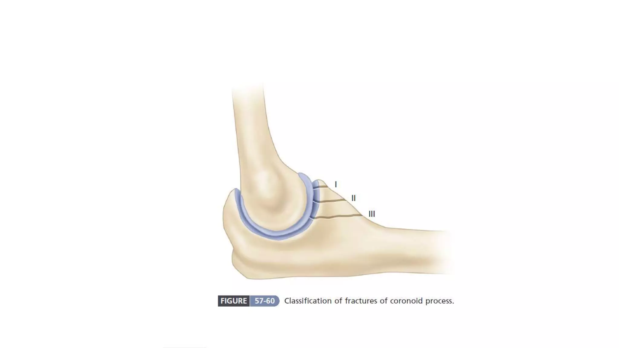 Coronoid fractures occur in 10% to 15% of elbow dislocations and are classified into three types based on the extent of the fracture. Diagnosis may require CT imaging for accurate assessment, and treatment options include sutures for small fragments and lag screws for larger ones. Careful evaluation is essential to rule out associated injuries, and repair of the lateral collateral ligament may be recommended in some cases.