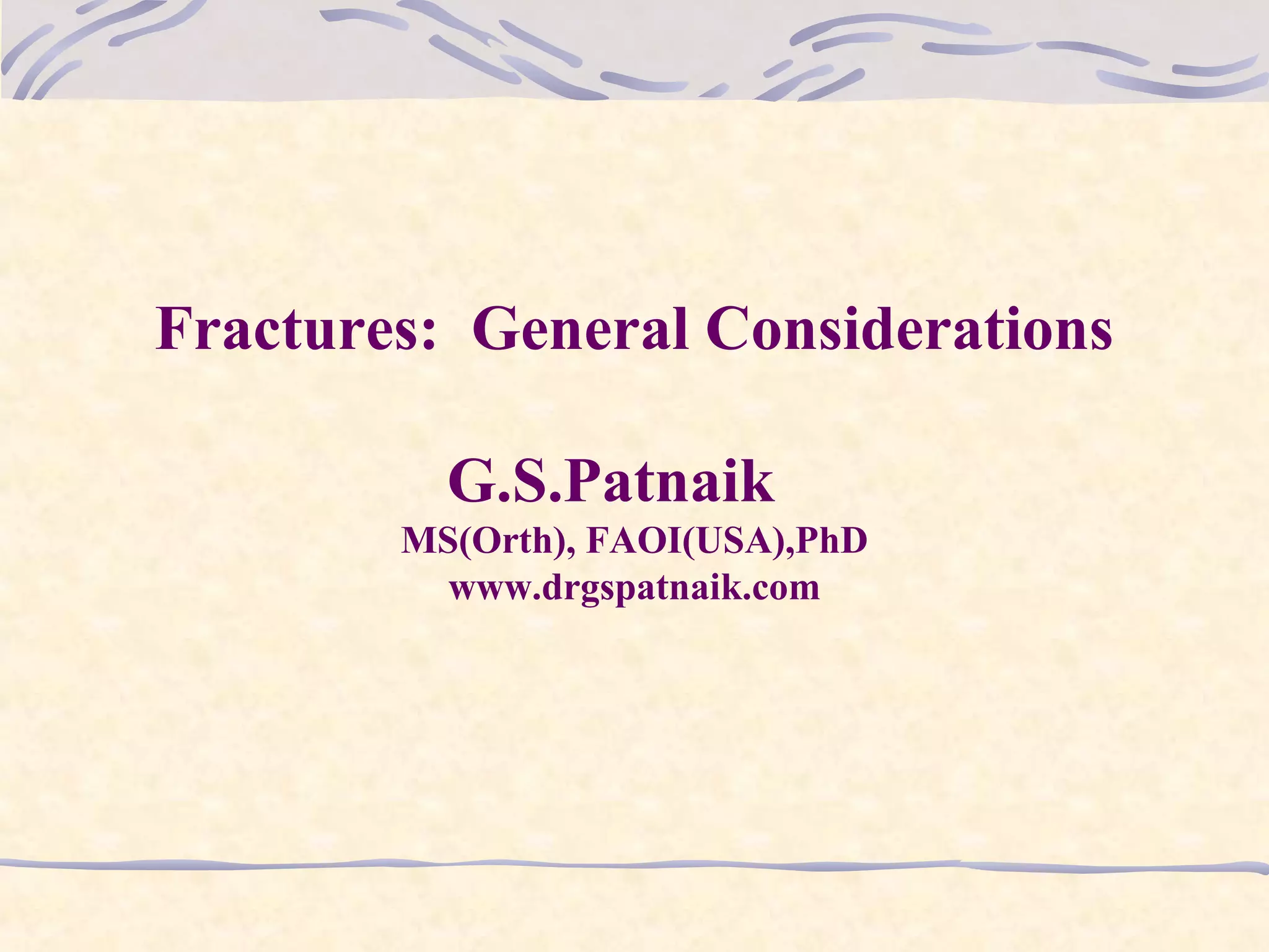 Fractures are breaks in the continuity of bone that are usually caused by trauma. They are described and classified based on their type, communication with the external environment, and anatomic location. The goals of treatment are to realign bone fragments through reduction, immobilize the bones to maintain alignment through fixation methods like casting, and restore normal function. Complications can include infection, compartment syndrome, venous thrombosis, fat embolism syndrome, malunion, non-union, osteomyelitis, avascular necrosis, and shortening.