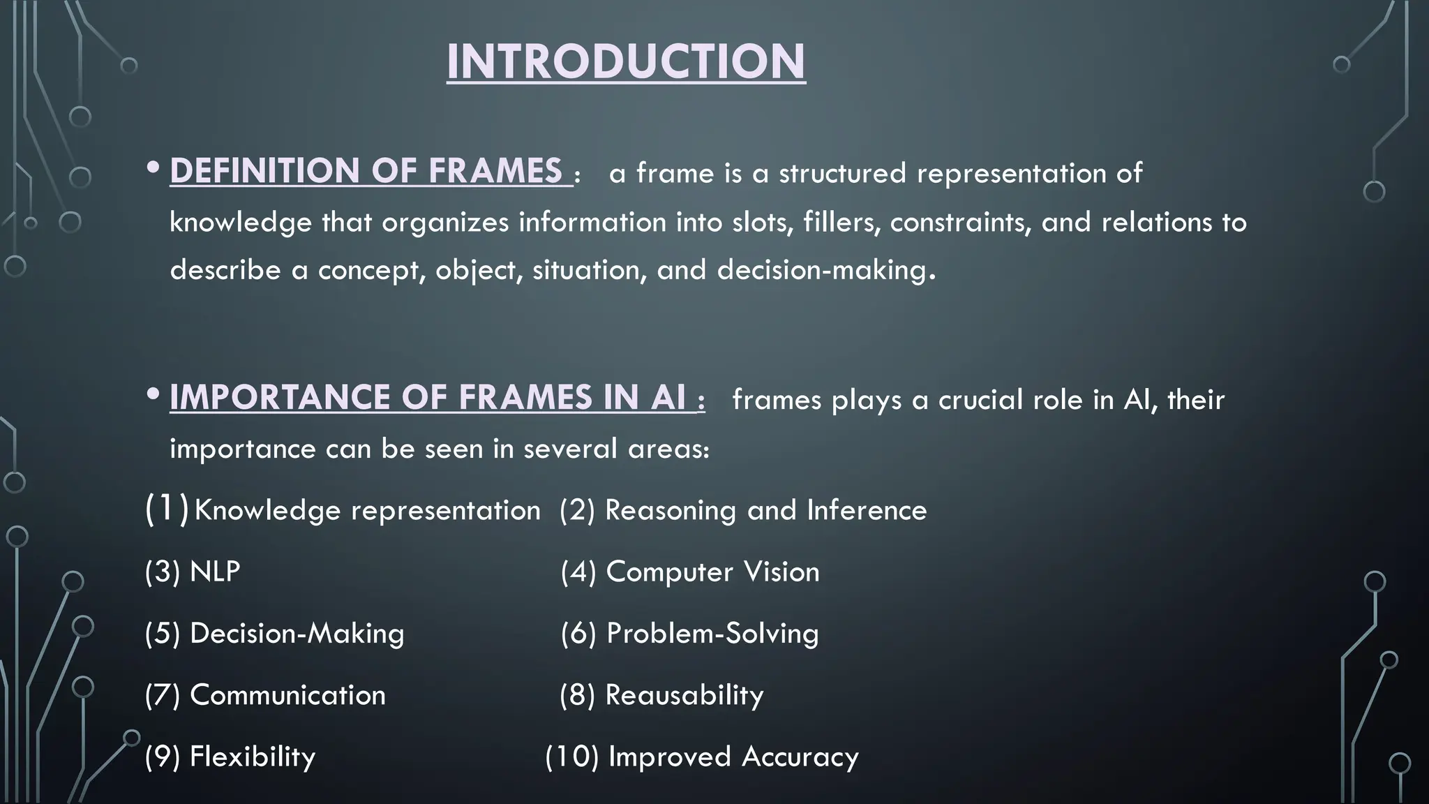 • IMPORTANCE OF FRAMES IN AI : frames plays a crucial role in AI, their
