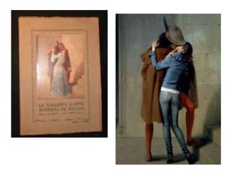 Francesco Hayez è un pittore e fotografo di corte noto per opere come 'Il Bacio' del 1859, un capolavoro che rappresenta il legame tra arte e messaggio politico al tempo di Vittorio Emanuele II. La sua opera ha suscitato polemiche e successivi adattamenti, mantenendo sempre una ricca ambientazione e un forte simbolismo. 'Il Bacio' ha influenzato non solo la pittura, ma anche il cinema, con registi come Luchino Visconti che ne hanno reinterpretato l'estetica nelle loro opere.