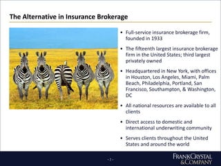 - The company is a full-service insurance brokerage firm founded in 1933 that is the 15th largest in the US and 3rd largest privately owned, headquartered in New York with offices nationwide and globally.