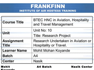 The document summarizes a student's research project on how recessions affect airline passengers. The student first defines a recession and explores how it impacts the economy and aviation sector. Cost-cutting measures by airlines are discussed, such as staff reductions and flight cancellations. The student then analyzes how these measures can negatively affect passengers through issues like poor customer service, increased fees, and reduced safety precautions. Ultimately, the student concludes that while airlines must cut costs, measures taken should not compromise passenger safety.