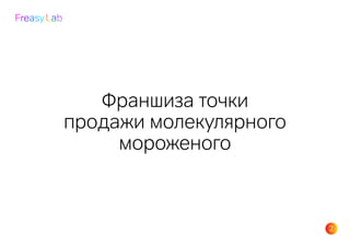 Франшиза Freasy Lab предлагает verkopen молекулярного мороженого, приготовленного с использованием жидкого азота, обеспечивая натуральный вкус и зрелищный процесс. Бренд строго придерживается стандартов качества, используя только натуральные ингредиенты и предоставляет поддержку партнёрам на всех этапах бизнеса. Популяризация франшизы осуществляется через обучение, маркетинг и помощь в запуске торговых точек в различных локализациях.